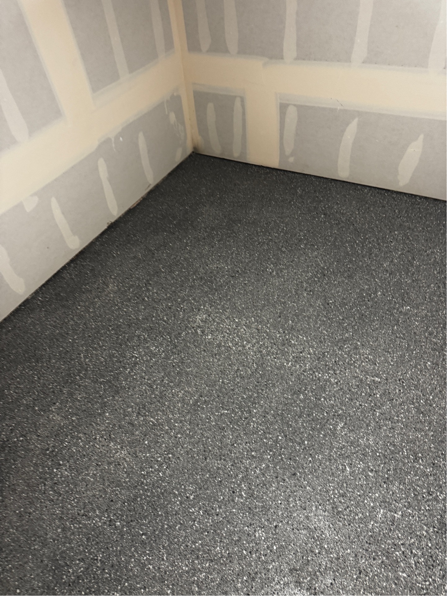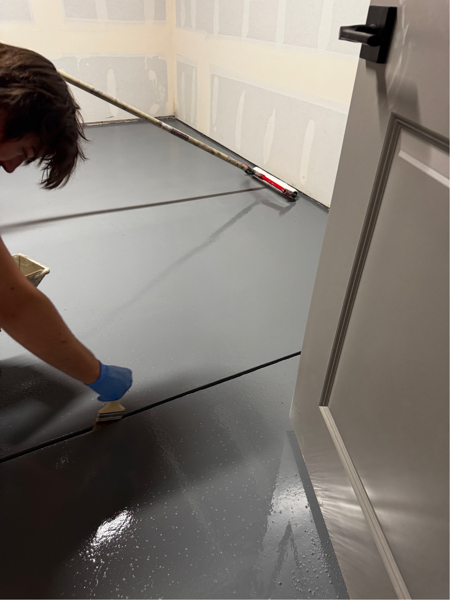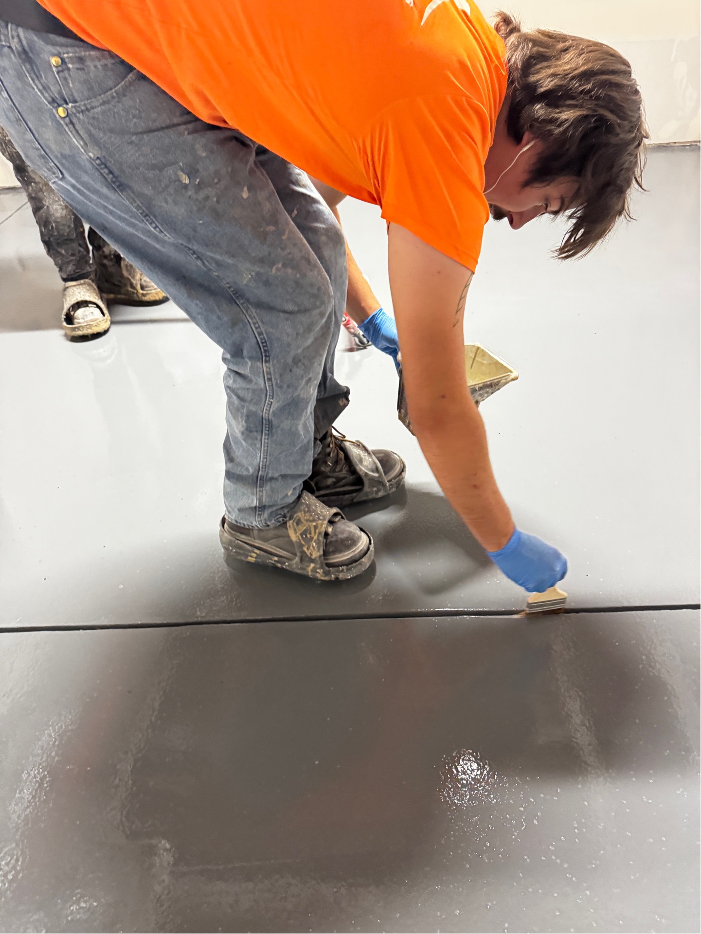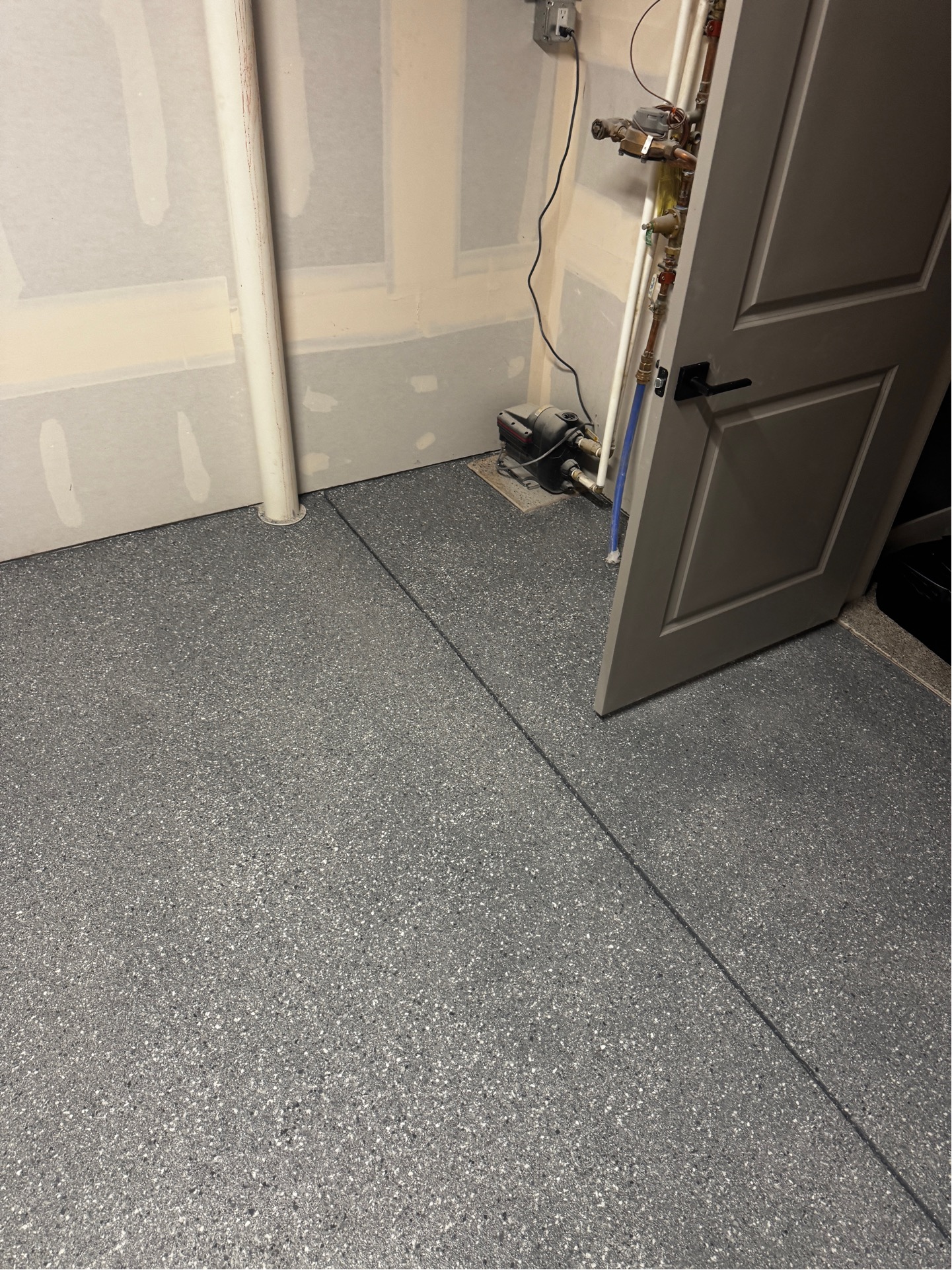 Finished in Blacksone Polished Collection with Grey Pigment Polyaspartic Floor Coating