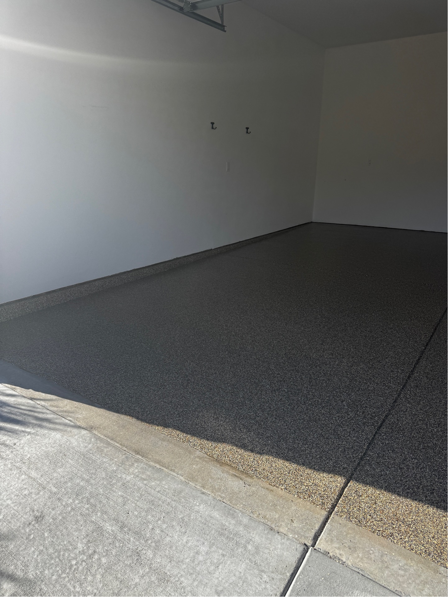 2 Car Garage Cappucino Polyaspartic Floor in Broadmore Terrace Patio Homes Colorado Springs