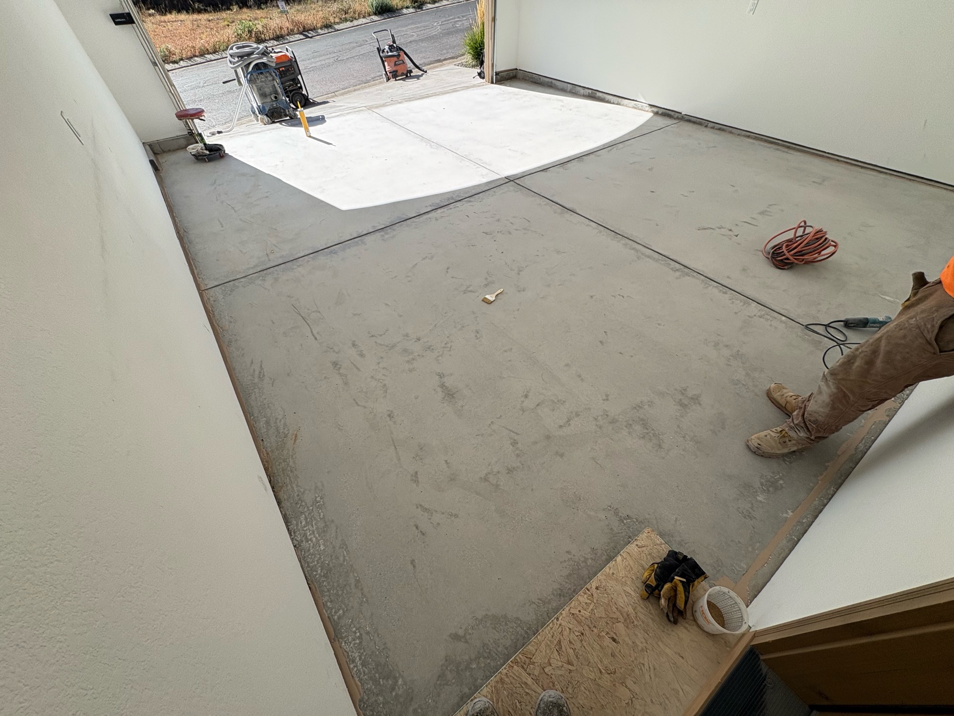 This project in Broadmore Terrance Patio Homes in Colorado Springs reflects our standard for durable, seamless concrete upgrades. We begin with diamond bit grinding to create the right profile, address cracks and spalls, and clean the surface thoroughly before any coating is applied.