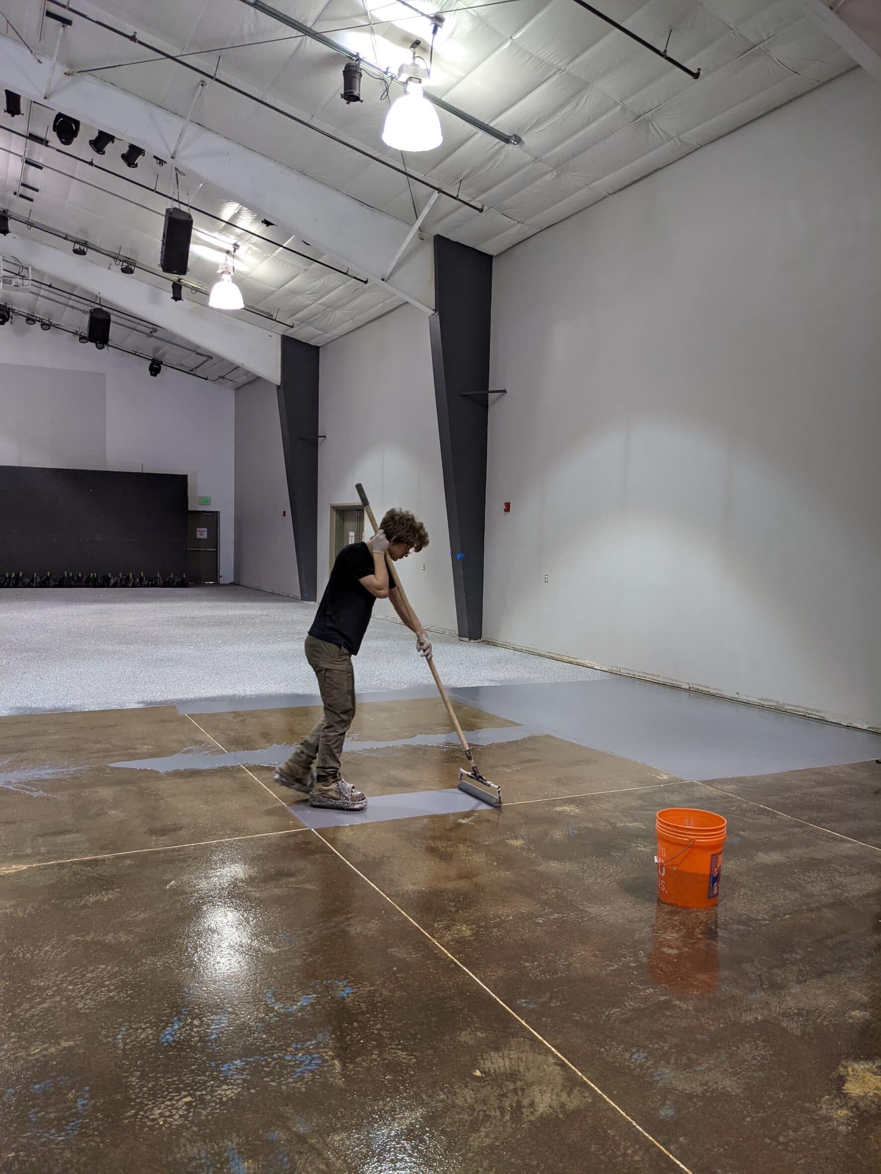 Full flake broadcast for durability and slip-resistance. Then we remove the excess before applying 3rd coat of polyaspartic.