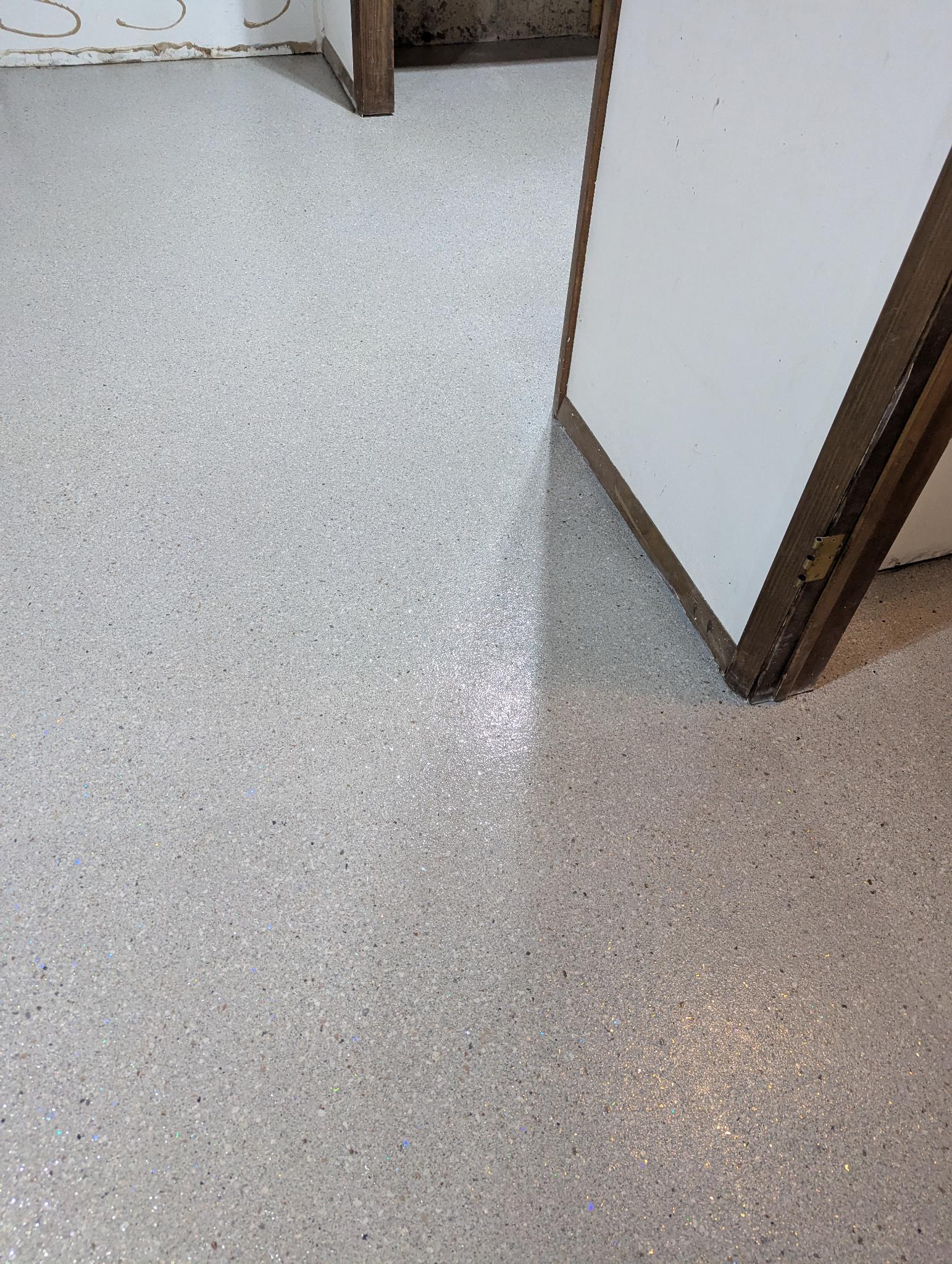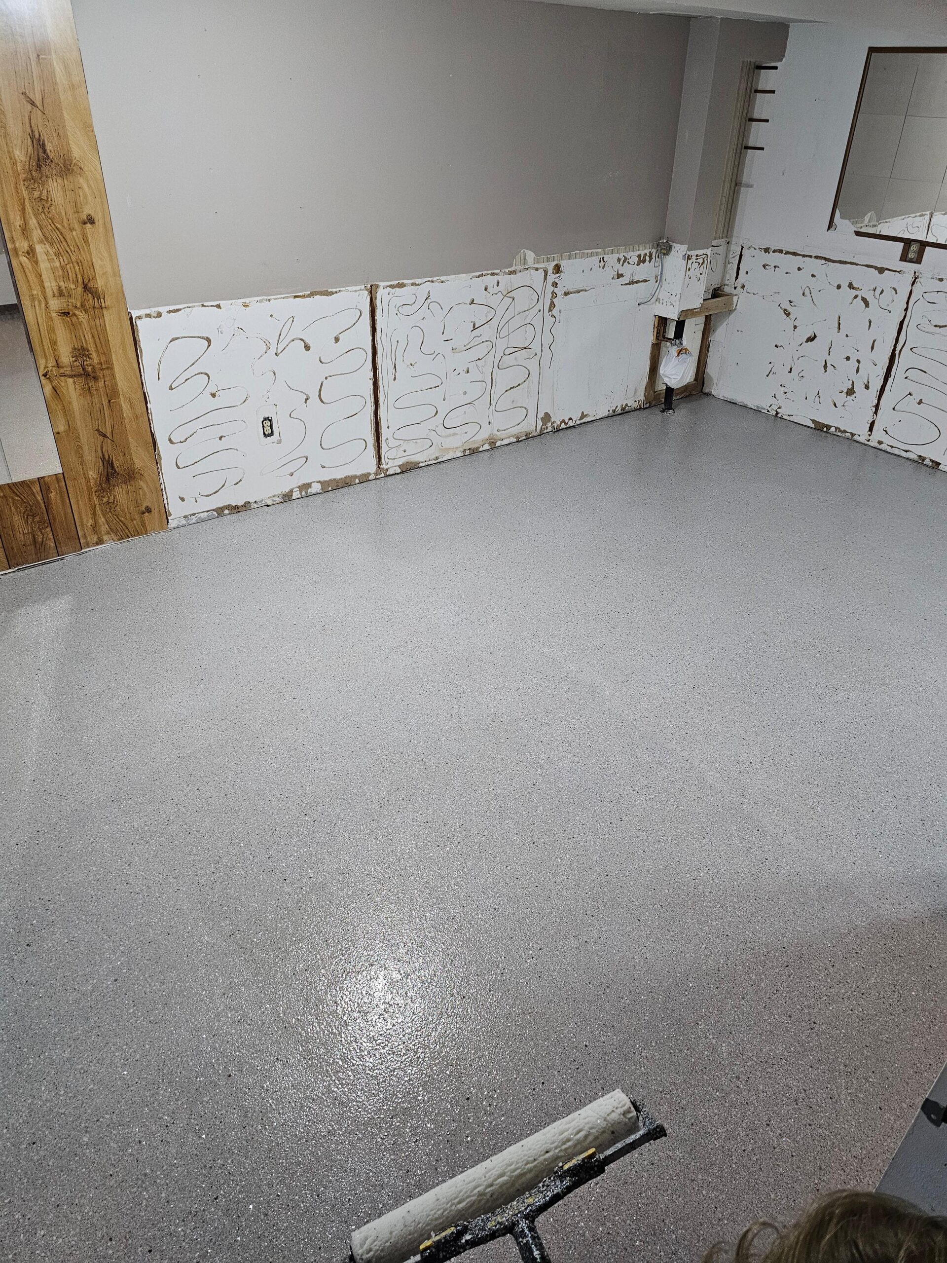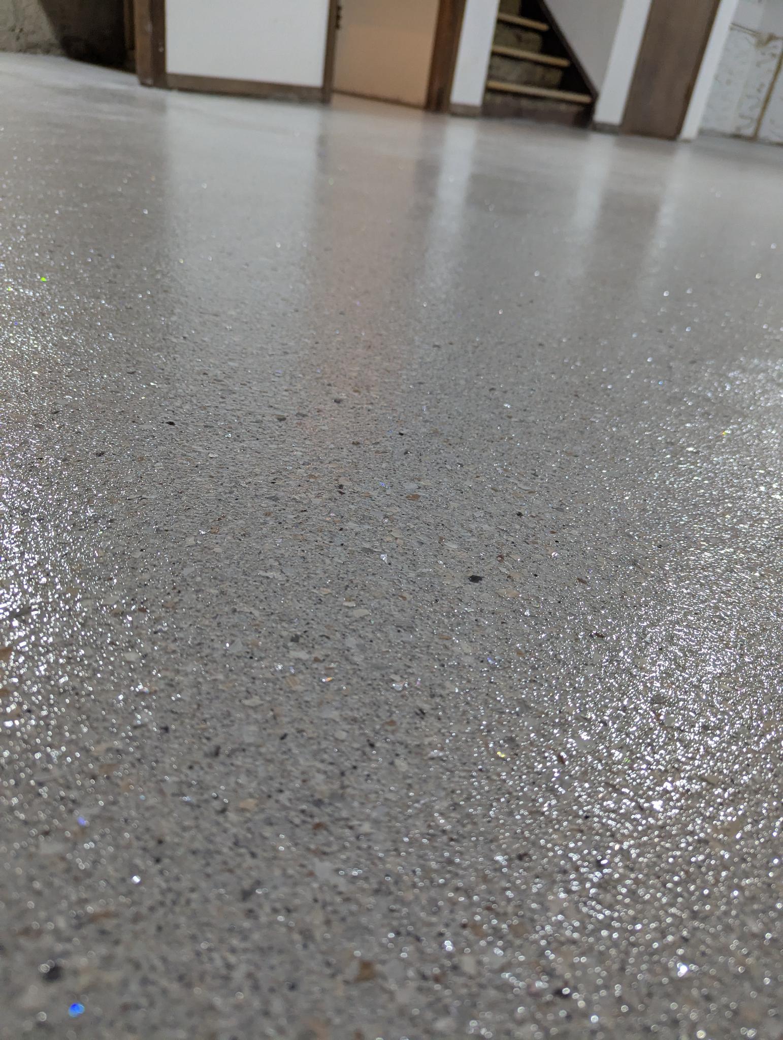 Basement Finished in Flintstone Polished Concrete Collection Flake