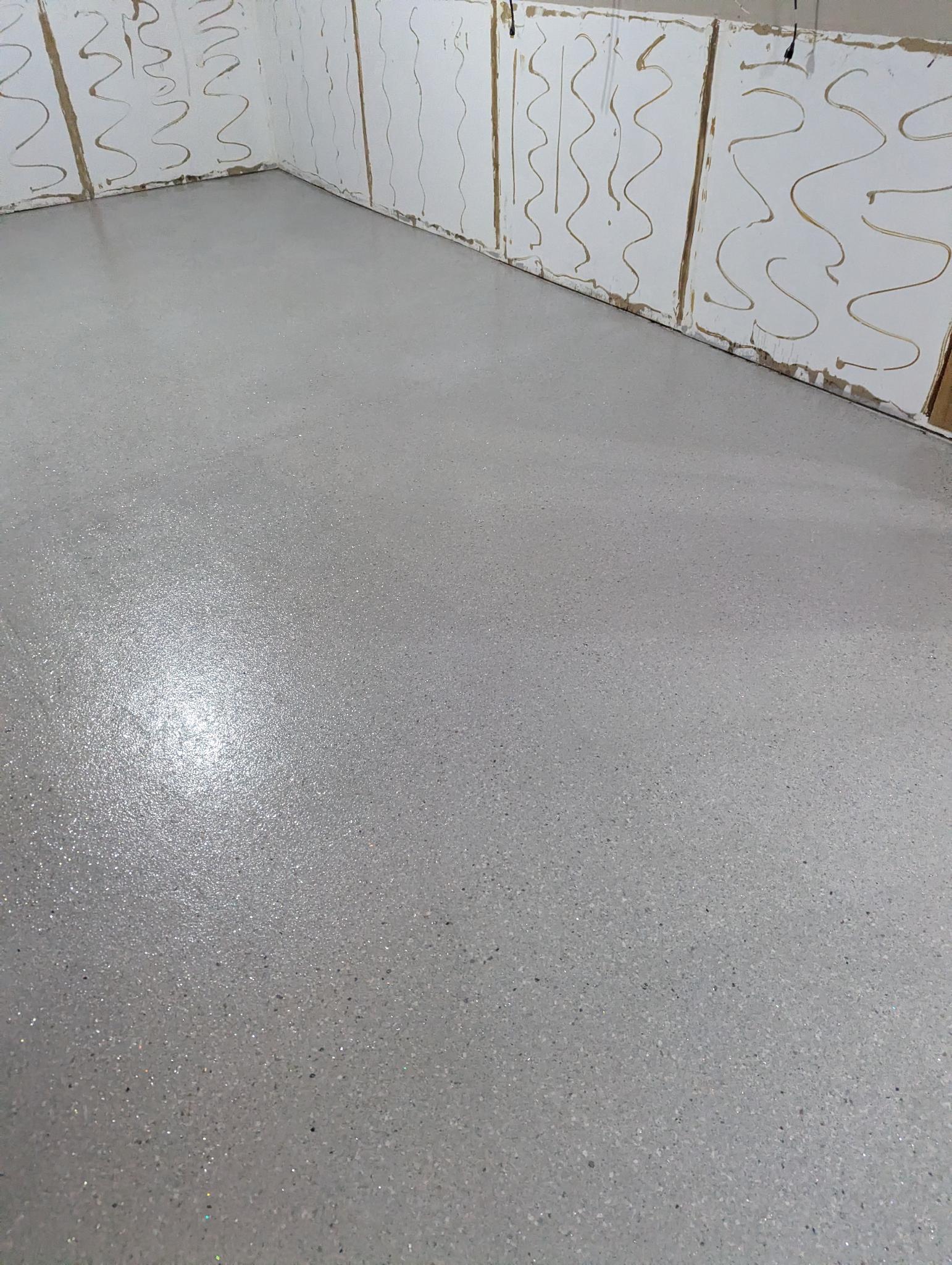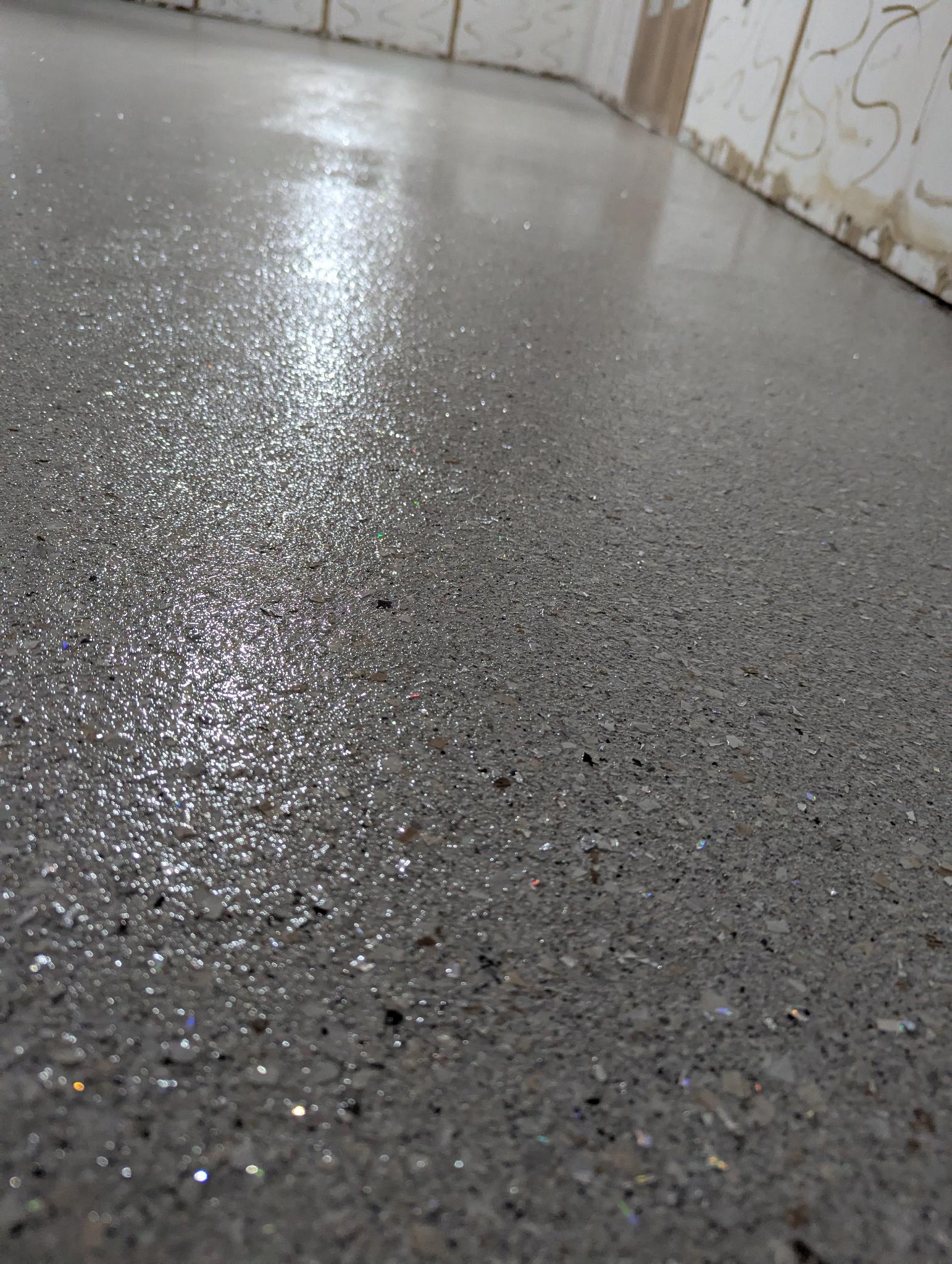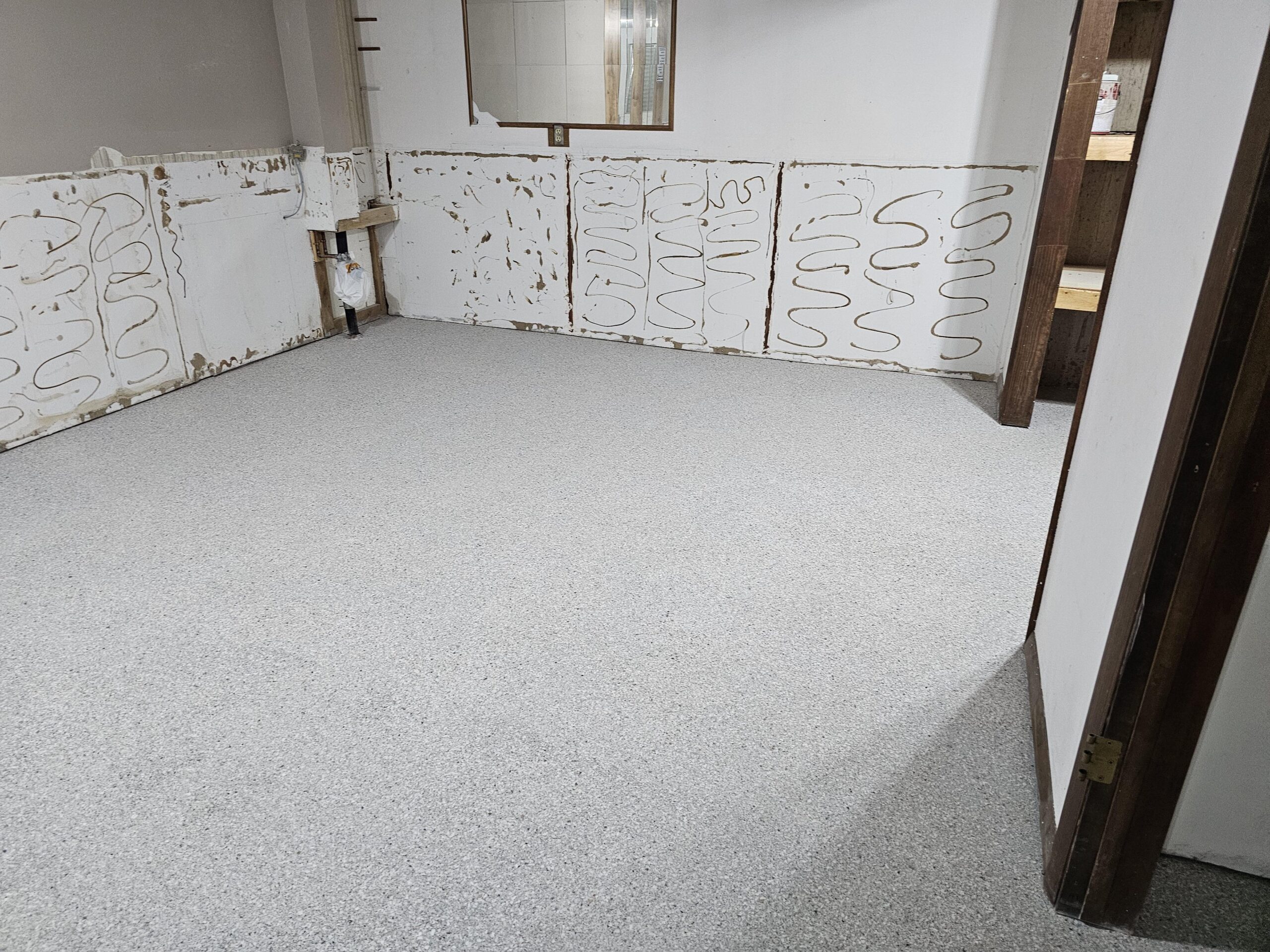 Basement Finished in Flintstone Polished Concrete Collection Flake