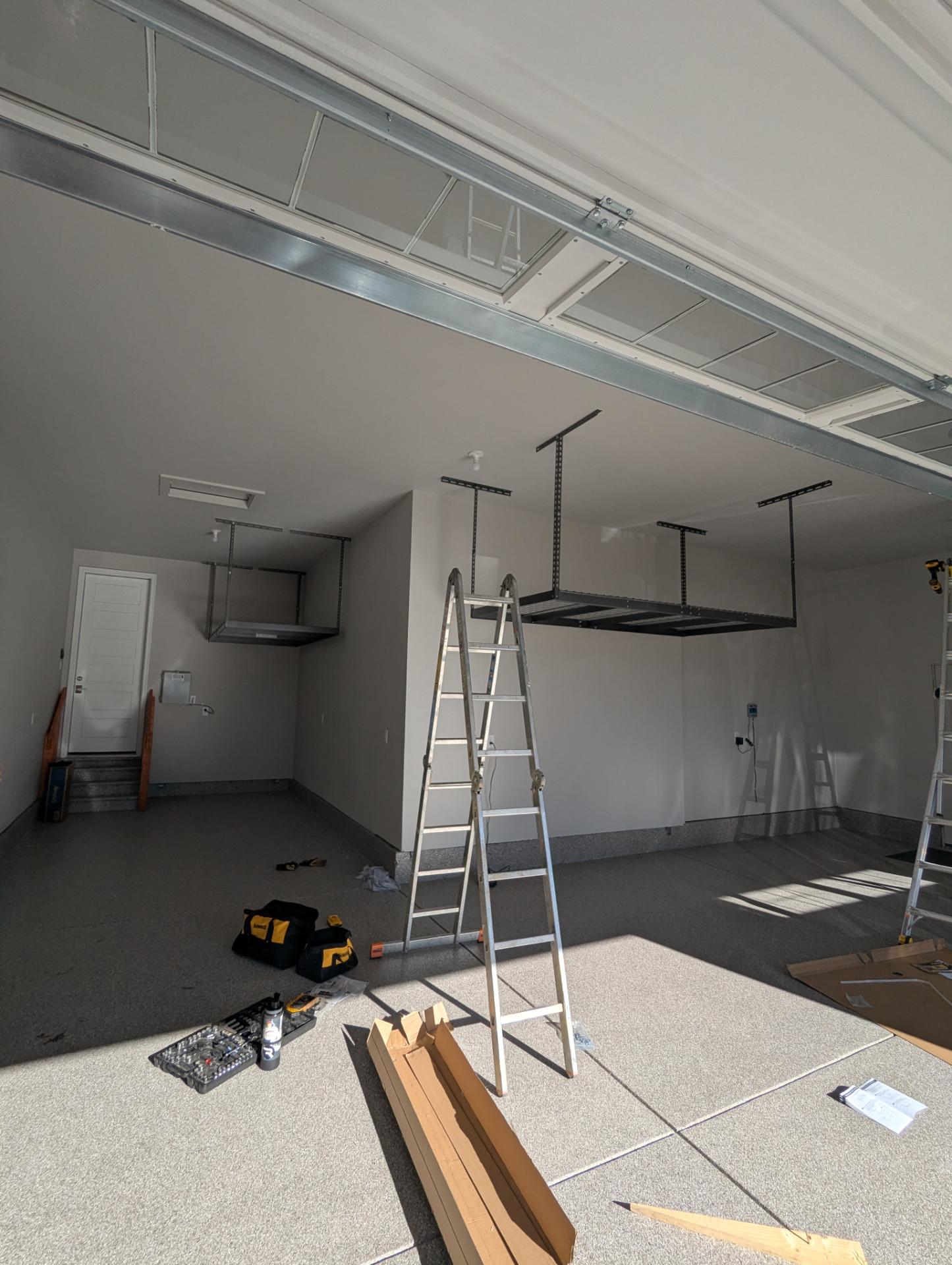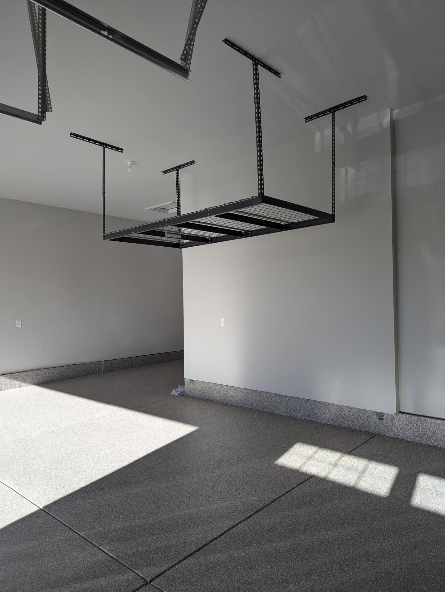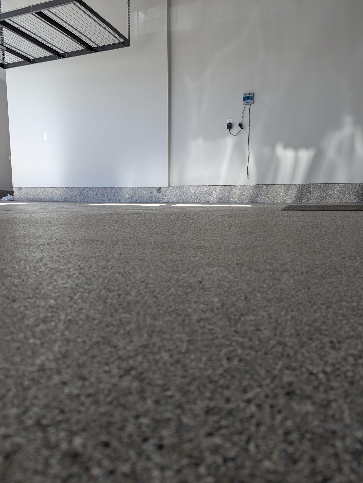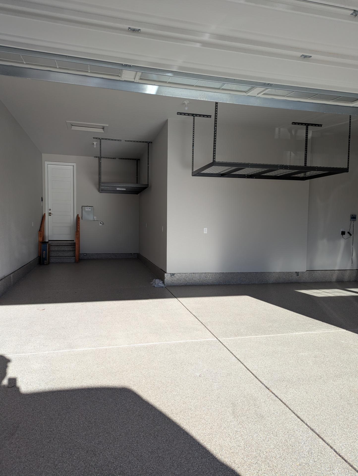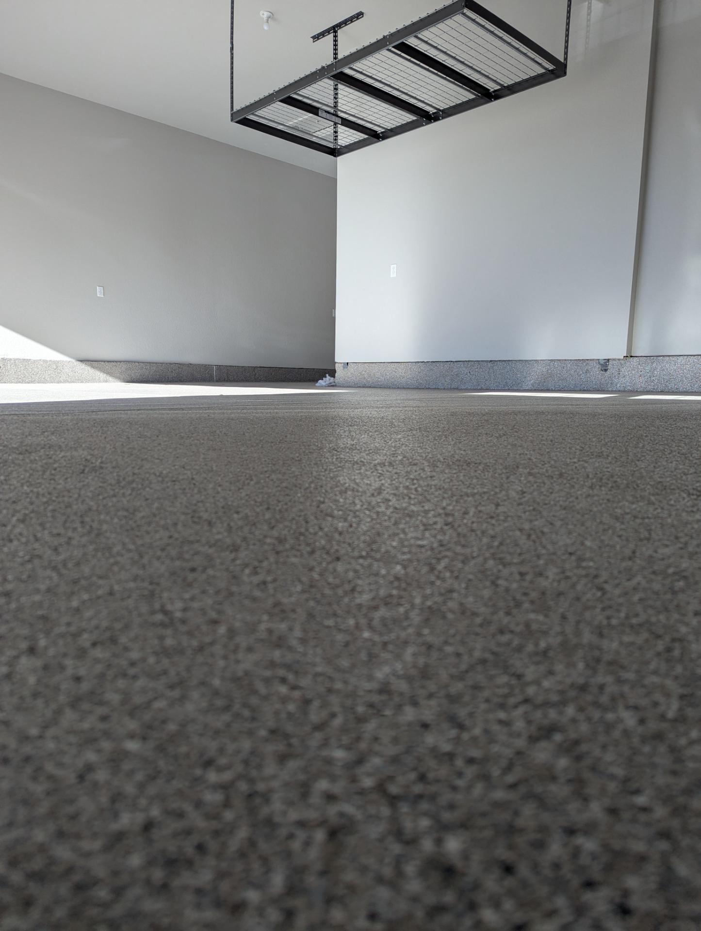 This 3 + tandem car garage with Overhead Storage Obispo Flake project reflects our standard for durable, seamless concrete upgrades. We begin with diamond bit grinding to create the right profile, address cracks and spalls, and clean the surface thoroughly before any coating is applied.
