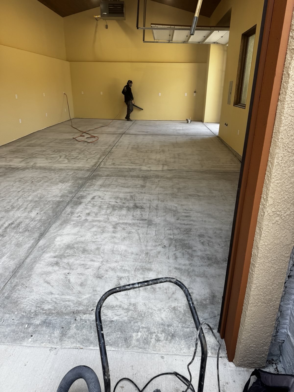 This RV garage and 4 car garage project in High Forest Ranch in Colorado Springs reflects our standard for durable, seamless concrete upgrades. We begin with diamond bit grinding to create the right profile, address cracks and spalls, and clean the surface thoroughly before any coating is applied.
